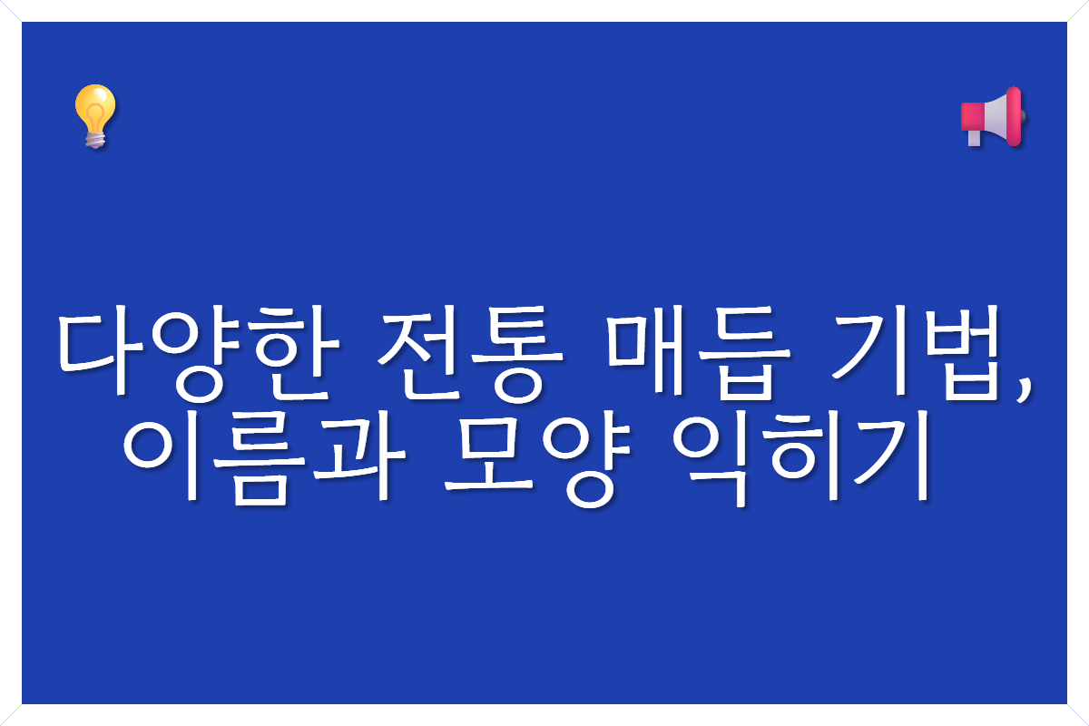 그렇다면 이 계단 위에는 얼마나 더 다채롭고 아름다운 매듭의 세계가 펼쳐져 있을까요? 오늘은 앞으로 우리가 배우고 도전하게 될 대표적인 전통 매듭들의 이름과 모양을 알아보는 시간을 갖겠습니다. 일종의 '매듭 도감'이라고 생각하시고, 어떤 매듭이 가장 마음에 드는지 눈으로 먼저 즐겨보세요!