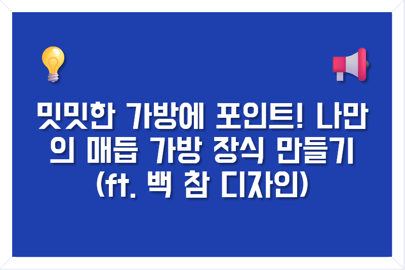 어떠신가요? 여러분의 손끝에서 탄생한 이 멋진 '백 참'은 어떤 명품 액세서리보다 더 특별한 아우라를 풍길 거예요. 당당하게 가방에 달고 다니며 여러분의 솜씨를 뽐내세요!