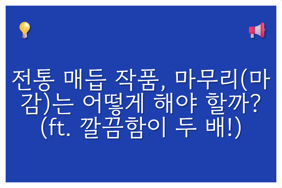 작품의 종류와 사용한 끈목의 재질에 맞는 마무리 방법을 선택하는 것, 이것이야말로 초보와 고수를 가르는 결정적인 한 끗 차이랍니다. 여러분의 작품에 가장 어울리는 방법으로 완벽하게 마무리해서 소중한 사람에게 선물해 보세요!